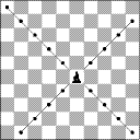 (Machine-gun) is a new piece which may move as a King or as a pawn from chess. That is, it may move forward by two spaces on its first turn, if that square is free, as a pawn. Although this piece moves like a King, it does not have the value of a King and may come close to an opposing King. |
