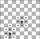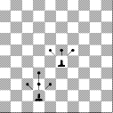 (Machine-gun) is a new piece which may move as a King or as a pawn from chess. That is, it may move forward by two spaces on its first turn, if that square is free, as a pawn. Although this piece moves like a King, it does not have the value of a King and may come close to an opposing King. |