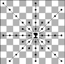 (Plane) is a new piece which executes two consecutive Knight moves in a turn, with a few exceptions. The forbidden second moves are those which bring the plane back to its starting position for the turn. |